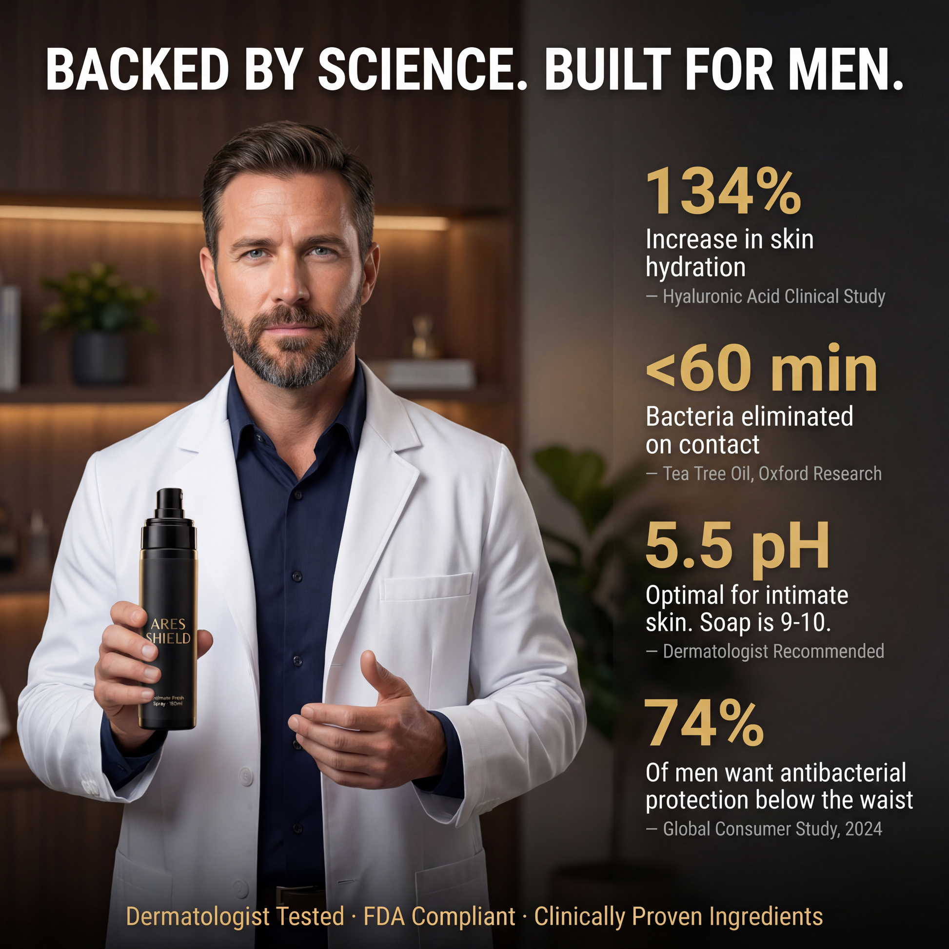 samengesteld op 5,5 pH om overeen te komen met en de mannelijke intieme huid te beschermen, in tegenstelling tot gewone lichaamsverfrissers